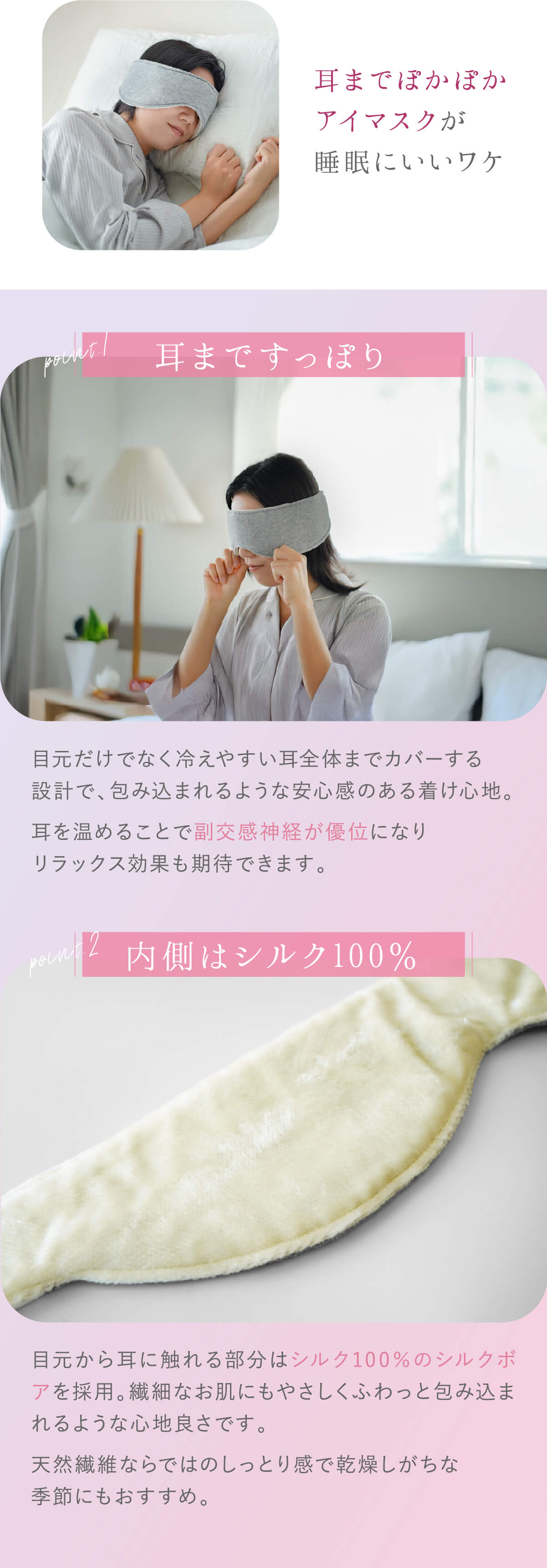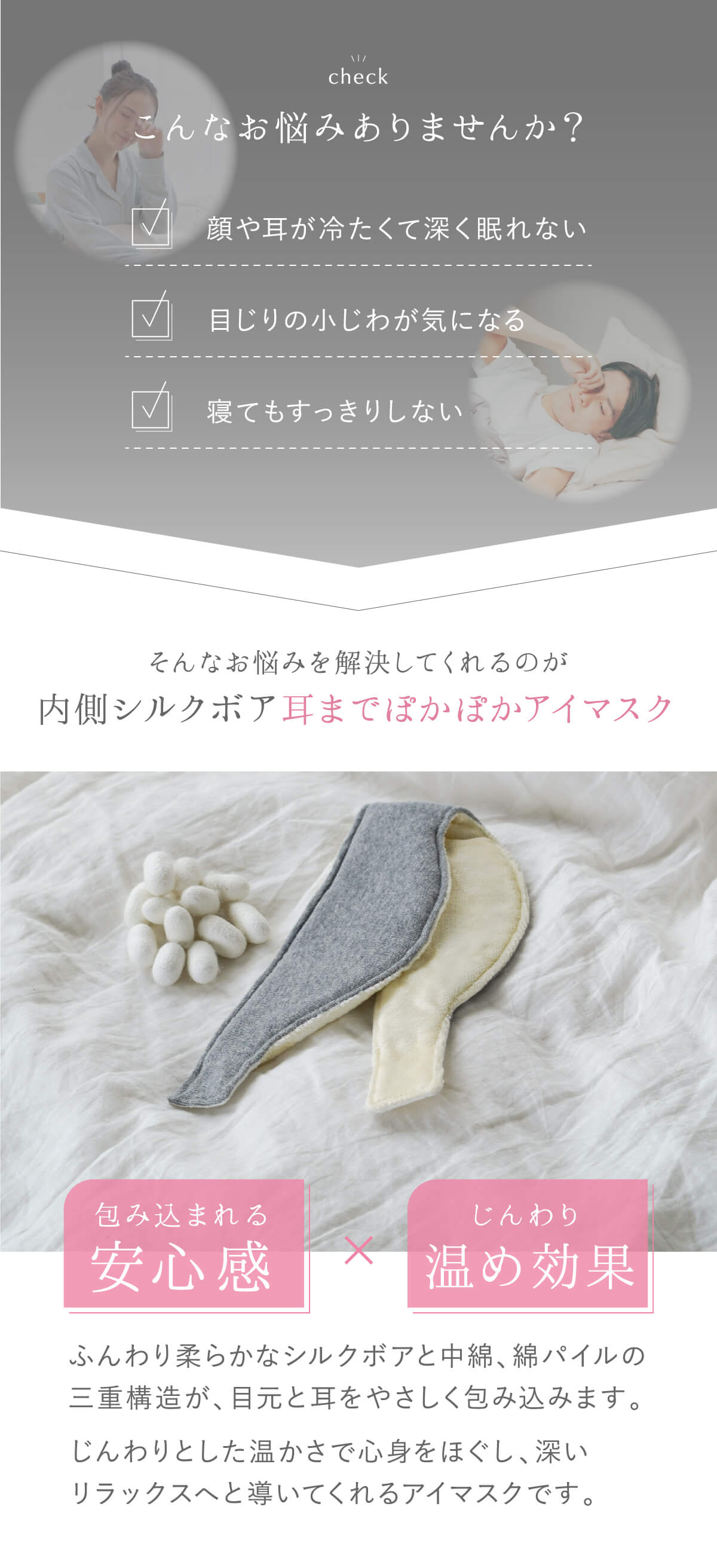 目元と耳をやさしく包み込み