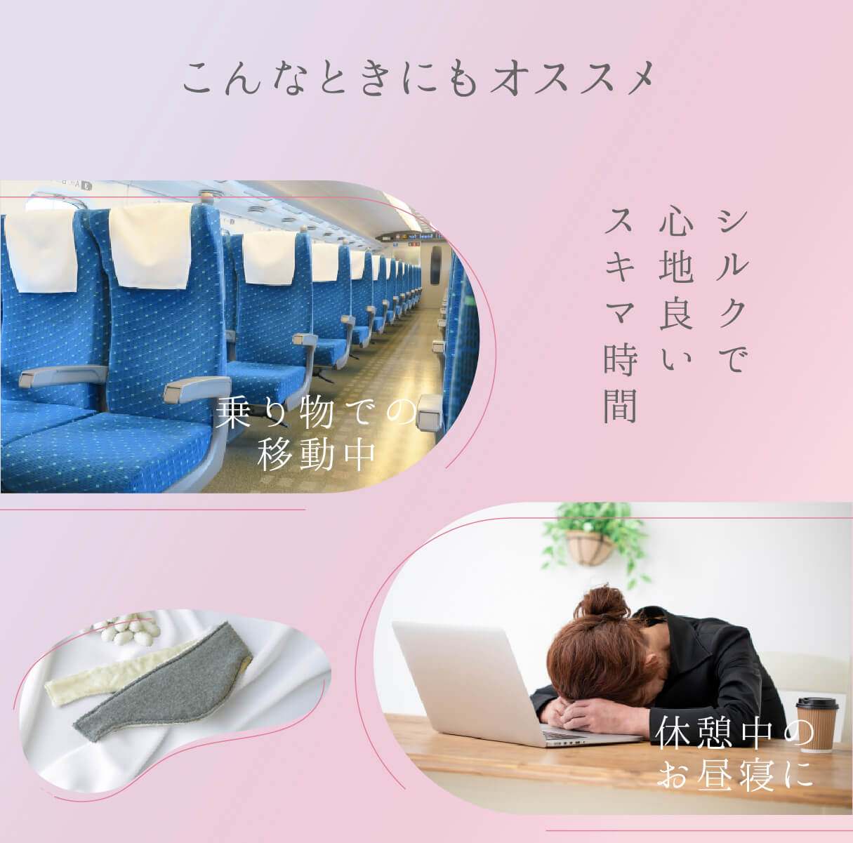〈耳まであたたかいシルクのアイマスク〉がおすすめ。