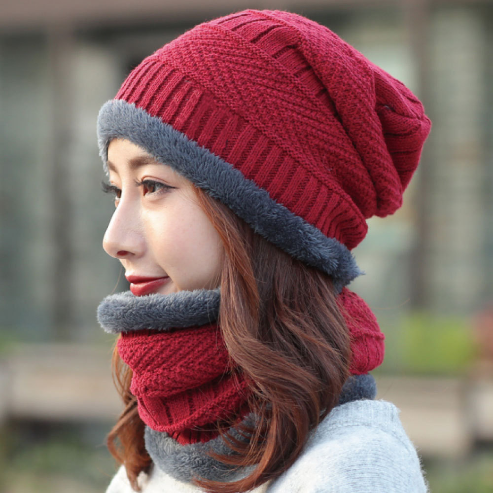 この冬の防寒対策に、おしゃれなニット帽&ニットネックウォーマー。ネックウォーマーは口元まで伸ばせるので、冬用マスクとしても重宝します。