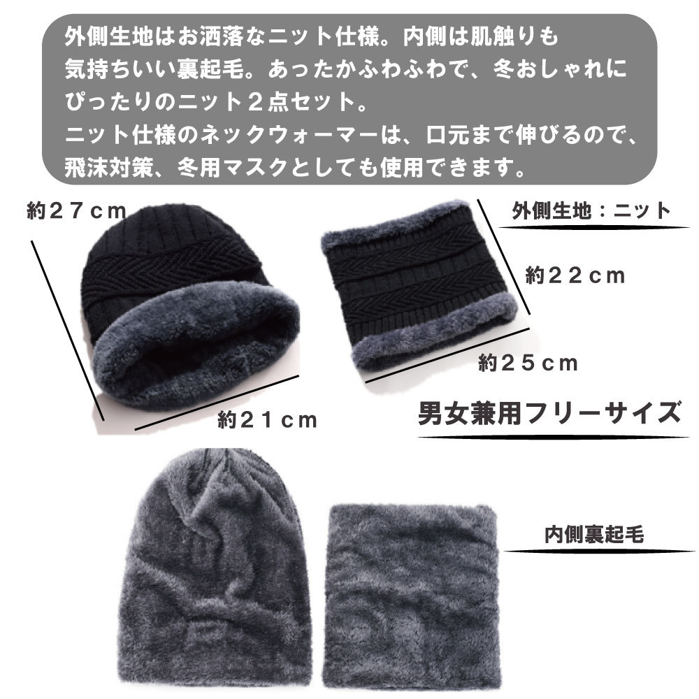 防寒ニット おしゃれ 冬用マスクにも あったかふわふわ 温感 ニット帽 ネックウォーマー 2点セット 男女兼用フリーサイズ 送料無料
