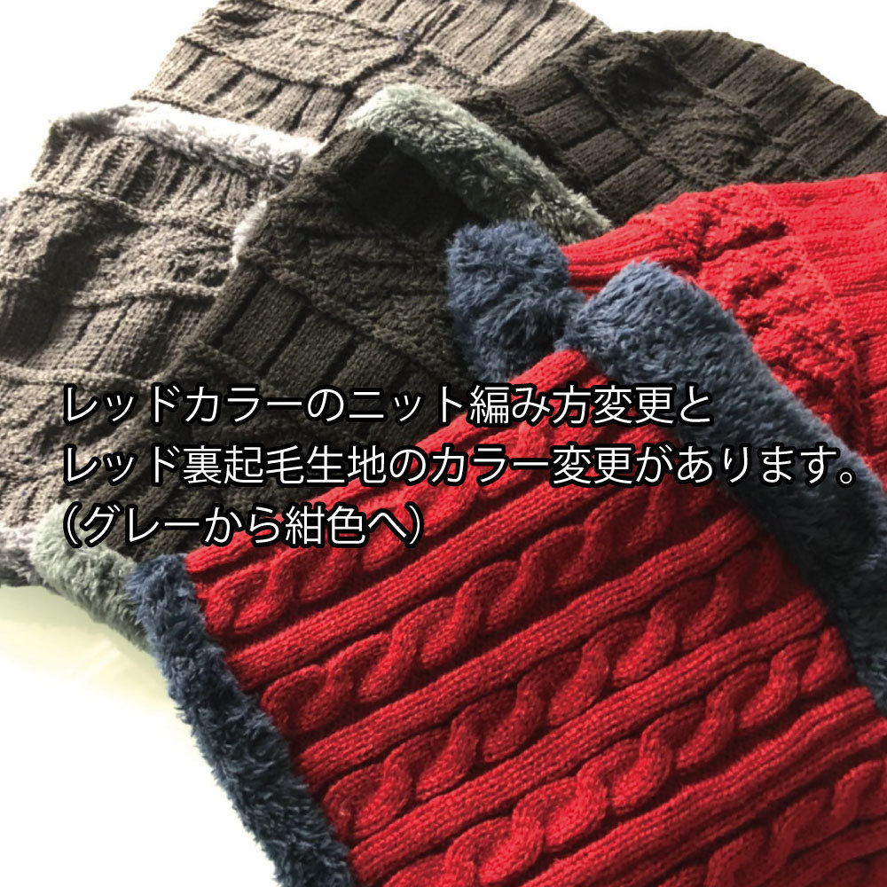 ※カラーレッドの編み方と裏起毛色が変更になりました。(グレー、→紺色)