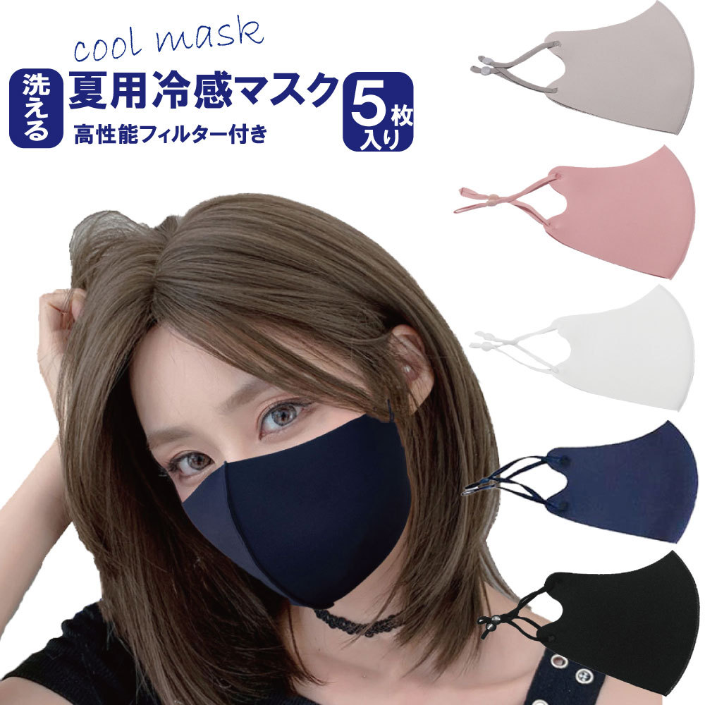 夏用 冷感マスク 洗えるマスク 息がしやすい 洗える マスク 接触冷感 男女兼用 洗って使える 5枚入り 個別包装 フェザーストア
