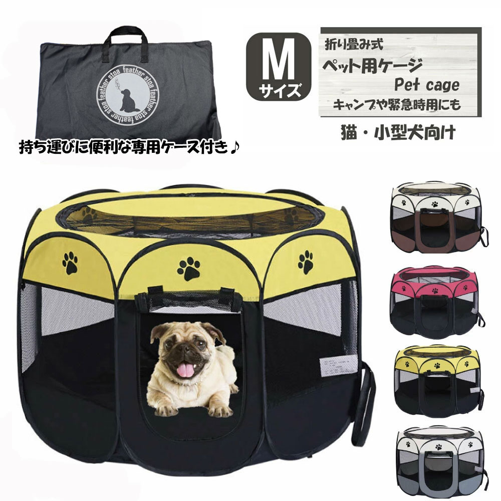 ペット用 折り畳みケージ M ペットサークル 専用ケース付き 屋外ゲージ キャンプ 災害時ペットハウス 犬用 猫用 小型犬 軽量コンパクト Mサイズ フェザーストア