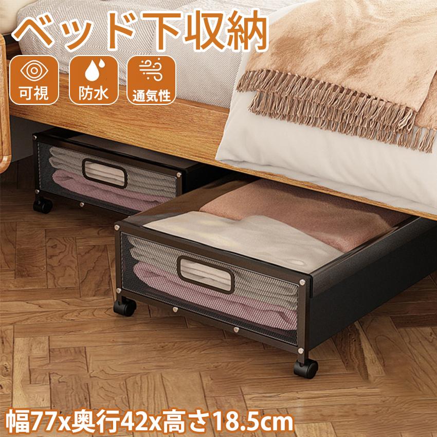ベッド下 収納ボックス 薄型 キャスター付き ソファ下 ベッド下ストレージ 収納ボックス 収納ケース 大容量 押入れ収納 ベッド下収納箱 組立簡単