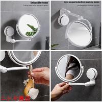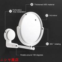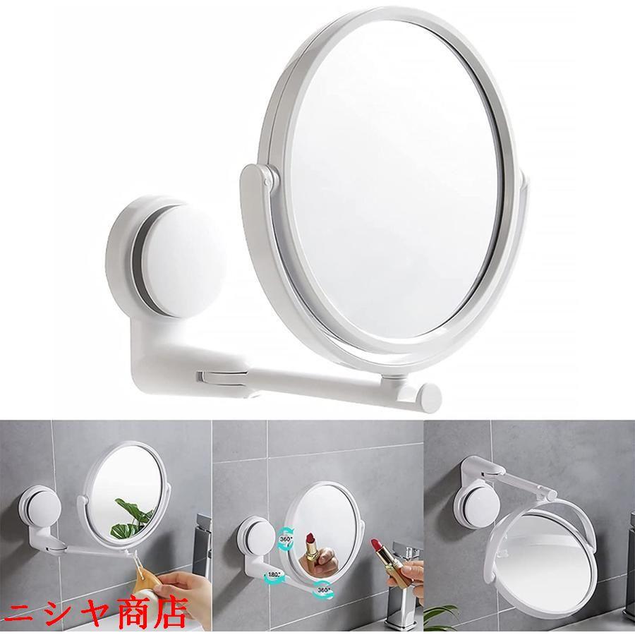 浴室鏡、壁掛け化粧鏡、吸盤付き両面3X拡大化粧鏡、バスルームシェービングミラー360回転、延長アーム付き 洗面所 浴室用 風呂 鏡 ホテル ミラー