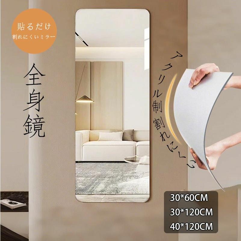 貼る 鏡 アクリルミラー 壁掛け ウォールステッカー 鏡 全身鏡 壁掛け 姿見鏡 割れない 全身 姿見 壁面 玄関 リビング ミラー 軽量 薄い 粘着 あんしんミラー