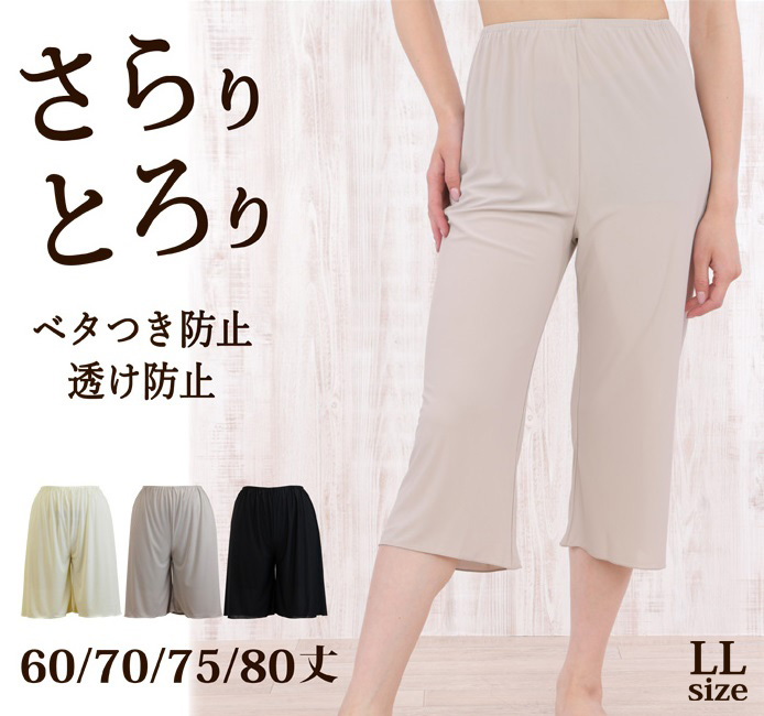 スカートやガウチョパンツ、ワンピースやドレスなどのインナーとして年間を通して快適にエレガントに着用いただけます。