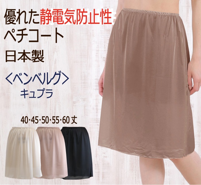 天然繊維が持つやさしさと化学繊維がもつ機能性を兼ね備えた<ベンベルグ>で仕立てたペチコートをぜひお試し下さい。