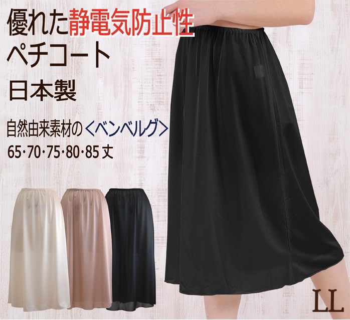 天然繊維が持つやさしさと化学繊維がもつ機能性を兼ね備えた<ベンベルグ>で仕立てたペチコートをぜひお試し下さい。