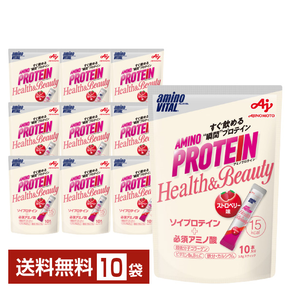 AMINO PROTEIN Health&Beauty アミノバイタル アミノプロテイン ストロベリー味 味の素 ソイプロテイン 必須アミノ酸 超低分子コラーゲン 3.8gスティック10本入り |
