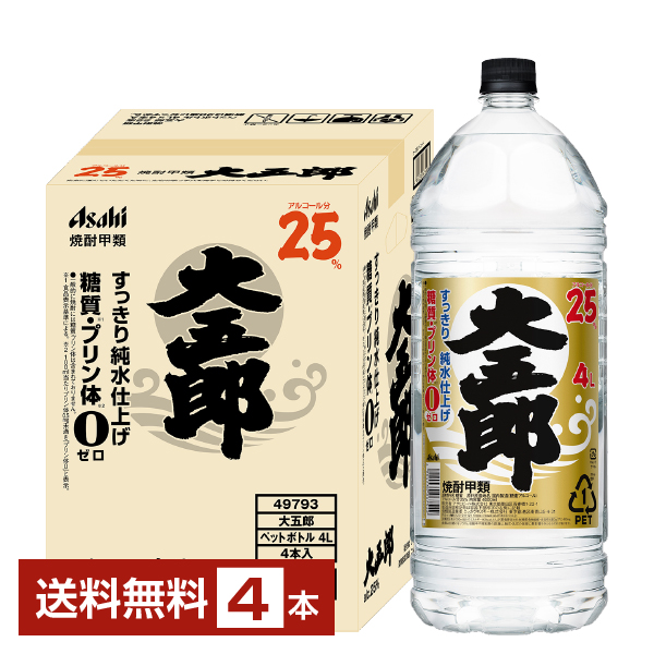 | 焼酎大五郎 25度は、磨き上げた純水で仕上げた、クセがなく飲みやすい味わいの焼酎甲類です。クセがなく飲みやすく、すっきりしていて口当たりがよく、飲みあきない味わいが特徴です。 焼酎ファンに嬉しい、糖質ゼロ(※1)・プリン体ゼロ(※2)。 ●一般的に焼酎には糖質・プリン体は含まれておりません。 (※1)食品表示基準による。 (※2)100ml当たりプリン体0.5mg未満を「プリン体0」と表示。 |