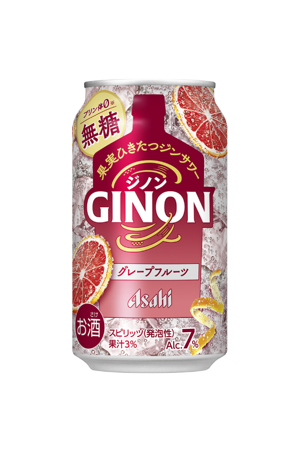 アサヒGINONグレープフルーツは、グレープフルーツの酸味と苦みを存分に味わえる、果実ひきたつ無糖のジンサワー。