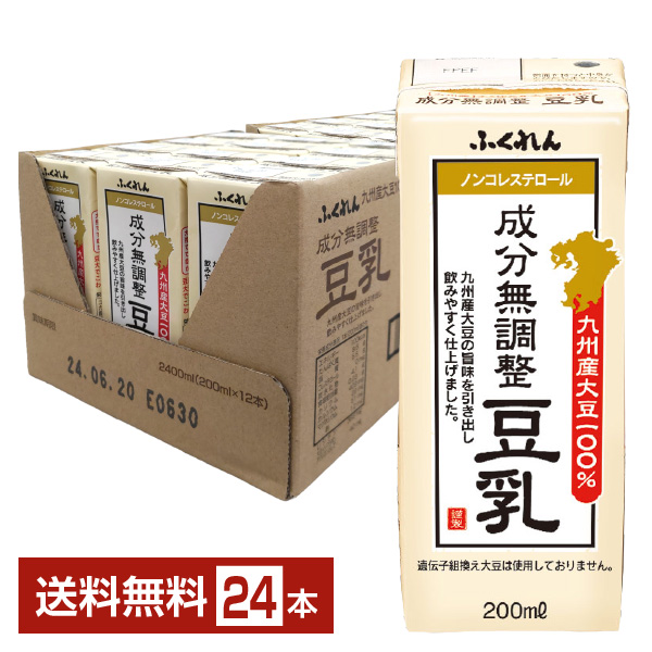 ふくれん 九州産大豆100% 成分無調整豆乳 200ml 紙パック 24本 1ケース 送料無料