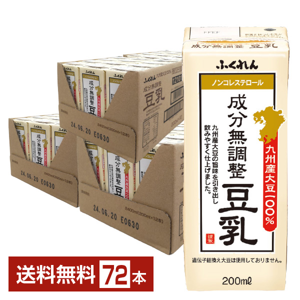 | ふくれん 九州産大豆100% 成分無調整豆乳は、九州産大豆の旨みを引き出し飲みやすく仕上げた成分無調整豆乳。 九州産大豆を100%使用し、丸大豆をそのまま浸漬して搾汁を行うことで、大豆の旨味を引き出し、大豆特有の臭いや苦味を抑えて美味しく仕上げました。 九州産大豆の旨み、コクを感じられる味わいが楽しめる豆乳です。 コレステロールゼロ。大豆固形分は9%。原料大豆に、遺伝子組換え大豆は使用しておりません。 |