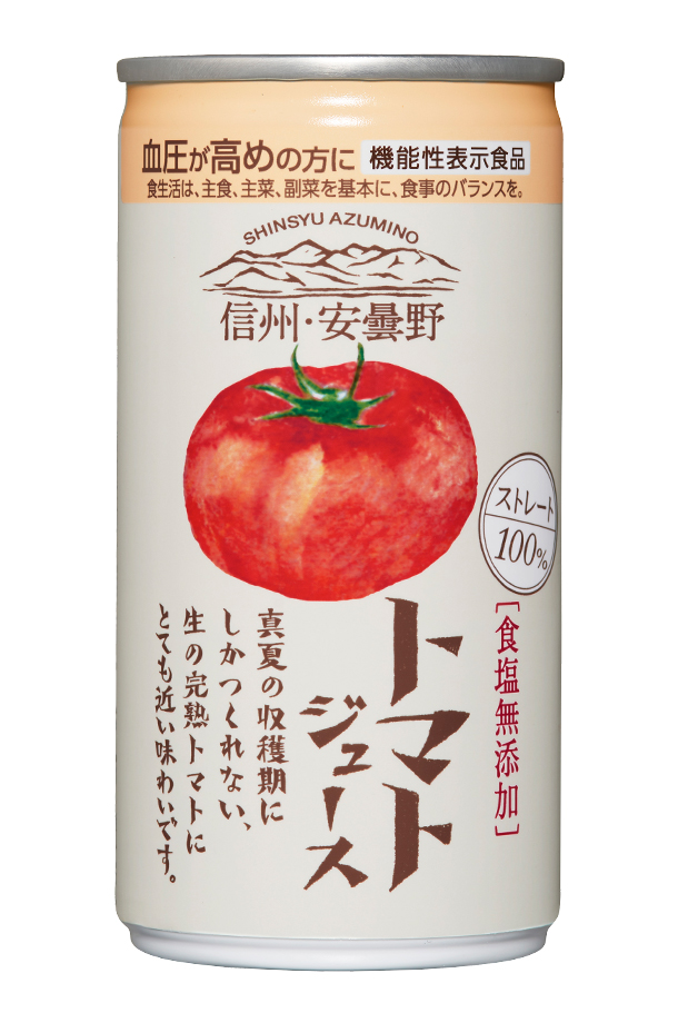 信州・安曇野トマトジュース (食塩無添加)は、信州・安曇野産の原料のみを使用した、シーズンパックのトマトジュース。
