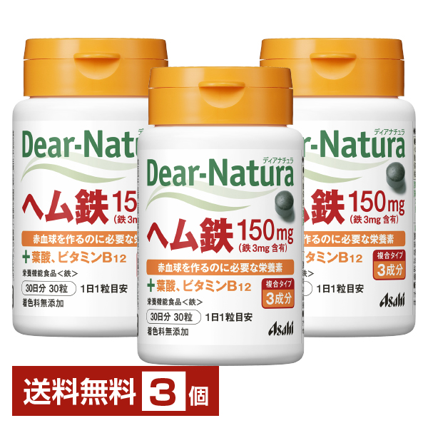 ヘム鉄 150mg(鉄3mg含有) 30粒(30日分) アサヒ ディアナチュラ 栄養機能食品 +葉酸、ビタミンB12 着色料無添加 |