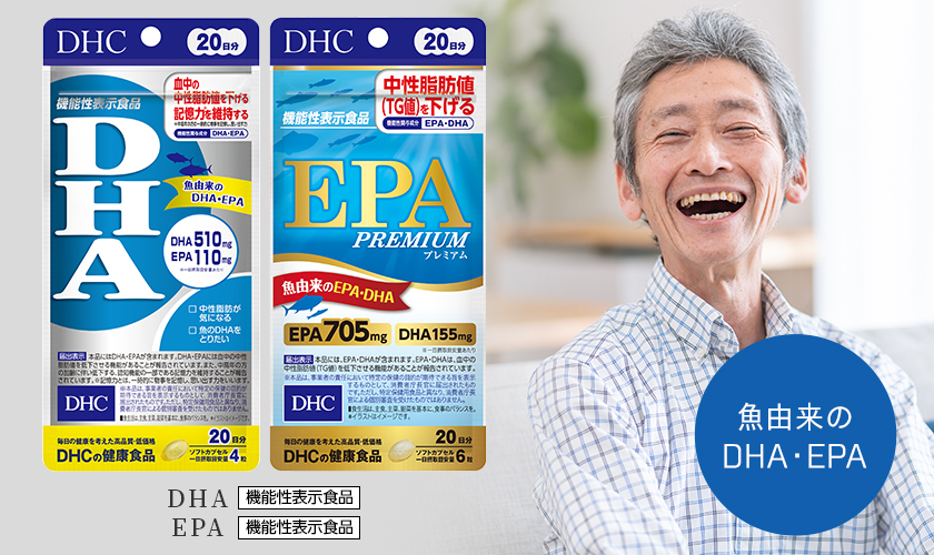 DHA:血中の中性脂肪値を下げる中高年の方の加齢に伴い低下する記憶力※1を維持することが報告されています。