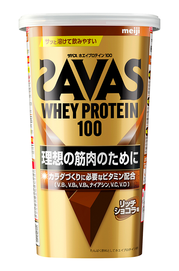 | ザバス ホエイプロテイン100 リッチショコラ味は、たんぱく原料として、吸収の良い「ホエイプロテイン」を100%使用しています。トレーニング直後などのプロテイン摂取ポイントに合わせてたんぱく質を補給できるので、理想的なカラダづくりをサポートします。 カラダづくりに欠かせない「ビタミンB群・ビタミンD」、体調維持に欠かせない「ビタミンC」を配合しています。 ※「ザバス ホエイプロテイン100」は、明治が実施したアスリートの食事調査結果に基づき、アスリートのカラダづくりに必要とされるビタミンを独自に設計して配合しています。 独自の造粒方法や配合で、プロテインの溶けやすさを追求しています。溶けやすいのでシェイカーだけでなく、グラスやコップでも簡単に溶かせておいしくお飲みいただけます。 ココアパウダーを「アドバンスト ホエイプロテイン100 ココア味」の3倍配合し、水でも濃厚なおいしさを実現しました。 牛乳で溶かせば、濃厚な味わいのチョコレートシェイクのように召し上がれます。 アンチ・ドーピング認証「インフォームドチョイス」を取得。 |