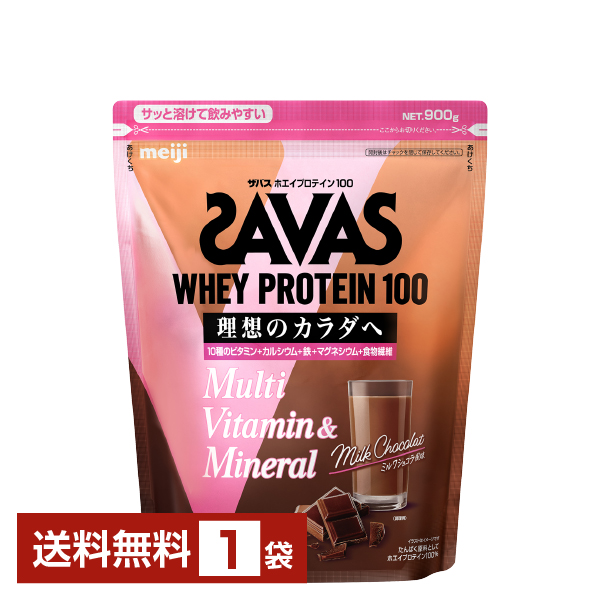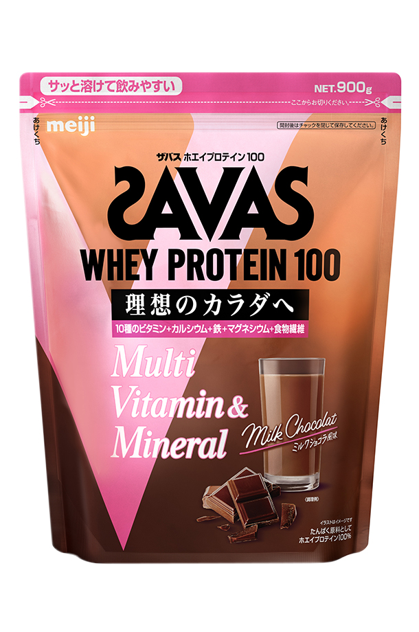WHEY PROTEIN 100 Multi Vitamin & Mineral 明治 ザバス ホエイプロテイン マルチビタミン&ミネラル ミルクショコラ風味 900g 理想のカラダへ 10種のビタミン・カルシウム・鉄・マグネシウム・食物繊維 |