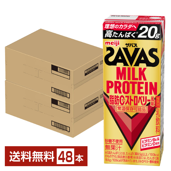 ザバス ミルクプロテイン 脂肪0 ストロベリー風味 明治 200ml 紙パック 24本×2ケース(48本) 送料無料