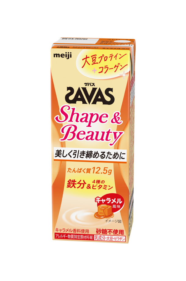 | ザバス Shape&Beauty キャラメル風味は、運動でキレイに引き締めたい女性にうれしい成分を配合した大豆プロテイン。 引き締まったカラダづくりをサポートする「大豆プロテイン」と美容にうれしい「フィッシュコラーゲン1500mg※」、運動する女性のカラダづくりをサポートする4種のビタミンと鉄分を配合しています。 ほどよい甘さの飲みやすいキャラメル風味です。 ※1本(200ml)当たり |