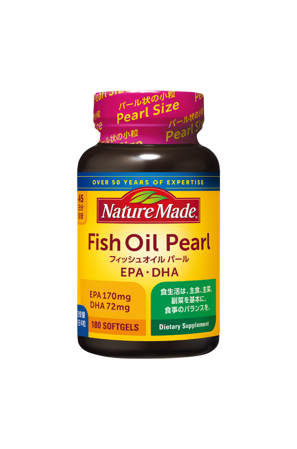 | 大塚製薬 ネイチャーメイド フィッシュオイルパールは、EPA・DHAのサプリメント。EPA・DHAを手軽に摂りやすくした、飲みやすいパール型の小粒タイプです。 脂肪の摂り過ぎを気にしている方、魚が苦手な方、小粒タイプのサプリメントをお探しの方におすすめ。 ベースサプリメントと合わせて健康の土台を作る、プラスオンサプリメントです。栄養補給として1日4粒を目安に、必ず水やぬるま湯などでお飲みください。 EPA・DHAとは EPA及びDHAはオメガ3系(n-3系)脂肪酸で、イワシ、アジ、サンマ、サバ、マグロなど青魚に含まれています。n-3系脂肪酸は生体内で作ることができないため、生命を維持するために食事から摂取する必要がある必須脂肪酸となっています。 食生活は、主食、主菜、副菜を基本に、食事のバランスを。 その他特記事項 開封後はキャップをしっかりしめてお早めにお召し上がりください。 多少白濁したり、カプセル同士がくっつく場合がありますが、品質に問題ありません。 ※アレルギー情報は、アーモンドを含む特定原材料等28品目で表示しています。 ※製品の切換えに伴い、お手元の製品パッケージの記載内容が本サイトの情報と異なる場合があります。 お召し上がりの際は、製品の表示をご確認ください。ご不明なことがございましたら、メーカー等にお問い合わせください。 |