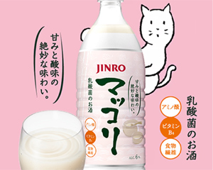 「JINRO マッコリ」は韓国焼酎(ソジュ)を日本で広め、日本の消費者・市場を熟知したJINROが研究を重ね開発した、本場韓国仕込みの伝統酒、マッコリ。