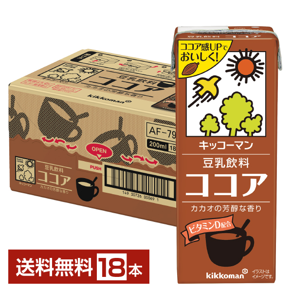 | キッコーマン 豆乳飲料 ココアは、契約栽培丸大豆を使用。ココアをブレンドしたまろやかな味わいの豆乳です。 ビタミンD(2.5μg/200ml)配合。 |