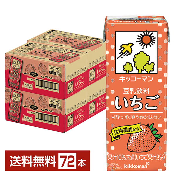 | キッコーマン 豆乳飲料 いちごは、いちご果汁をブレンドし、甘酸っぱい爽やかな味わいに仕上げた豆乳飲料です。 すっきりとした口当たりで豆乳が苦手な方にも美味しくお召し上がりいただけます。さらに、食物繊維を配合した朝食の一杯やリフレッシュしたい時にぴったりの心も体も喜ぶ豆乳飲料です。 |
