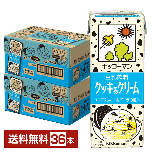 | キッコーマン 豆乳飲料 クッキー&クリームは、アイスクリームとして人気の定番フレーバーのクッキー&クリームを再現しました。 ココアクッキーとバニラの風味が特長で、食後のデザートやおやつなどにおすすめの豆乳です。 そのままお飲みいただくのはもちろんのこと、パックのまま凍らせてヘルシーな豆乳アイスとしてもお楽しみいただけます。 |