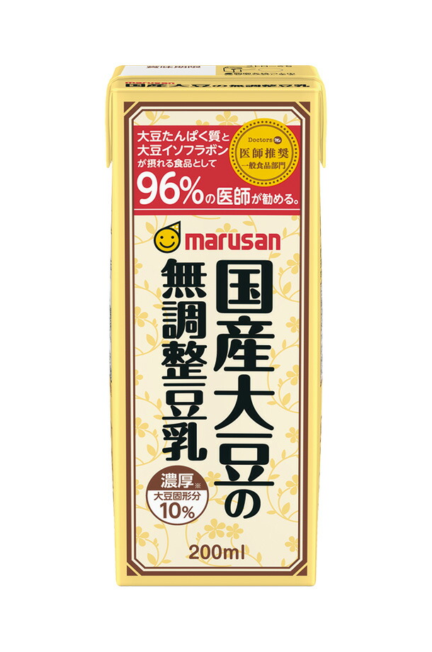 | マルサン 濃厚10%国産大豆の無調整豆乳は、「大豆たんぱく質」と「大豆イソフラボン」が摂れる食品として、96%の医師が勧める(2020年4月 Doctors Me調べ)カラダにうれしい無調整豆乳。 100%国産の大豆を使用した、大豆固形分10%の濃厚(※)タイプです。 ※マルサンアイ有機豆乳無調整(大豆固形分9%)と比較 |