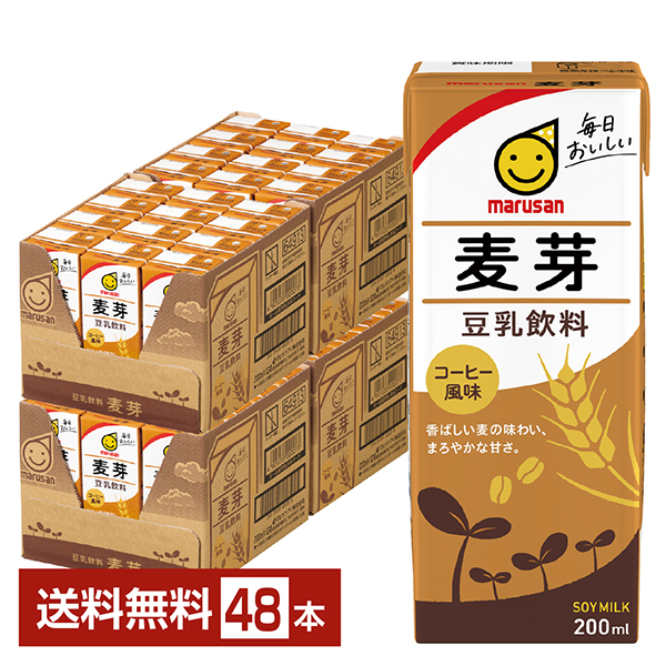 マルサン 豆乳飲料 麦芽 200ml 紙パック 24本×2ケース(48本) 送料無料