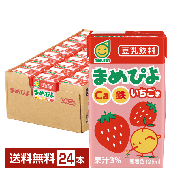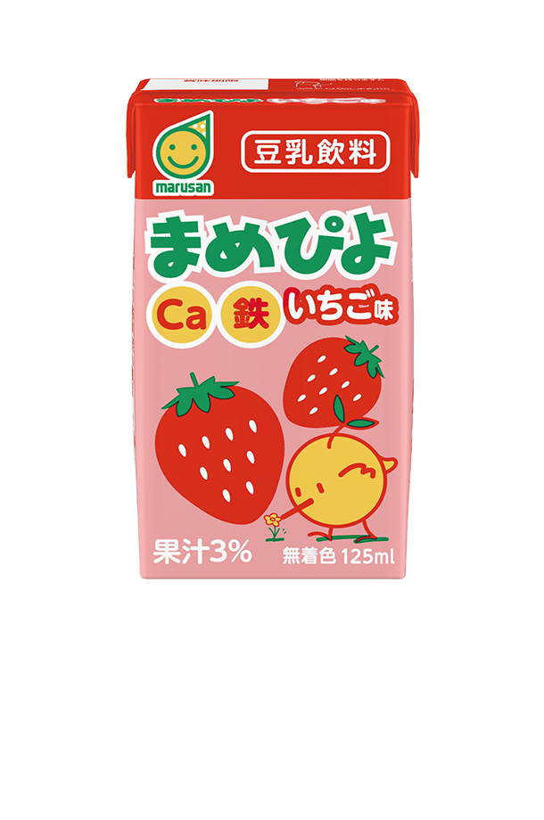 | まめぴよ いちご味は、大豆に含まれる植物たんぱく質がバランスが良く、お子さまの成長サポートに最適な、おいしいいちご味の豆乳飲料。 カルシウム・鉄分を含み、乳成分不使用なので、乳アレルギーのお子さまでも安心してお飲みいただけます。 125mlとお子さまやご年配の方でも飲み切りやすいサイズ。 |