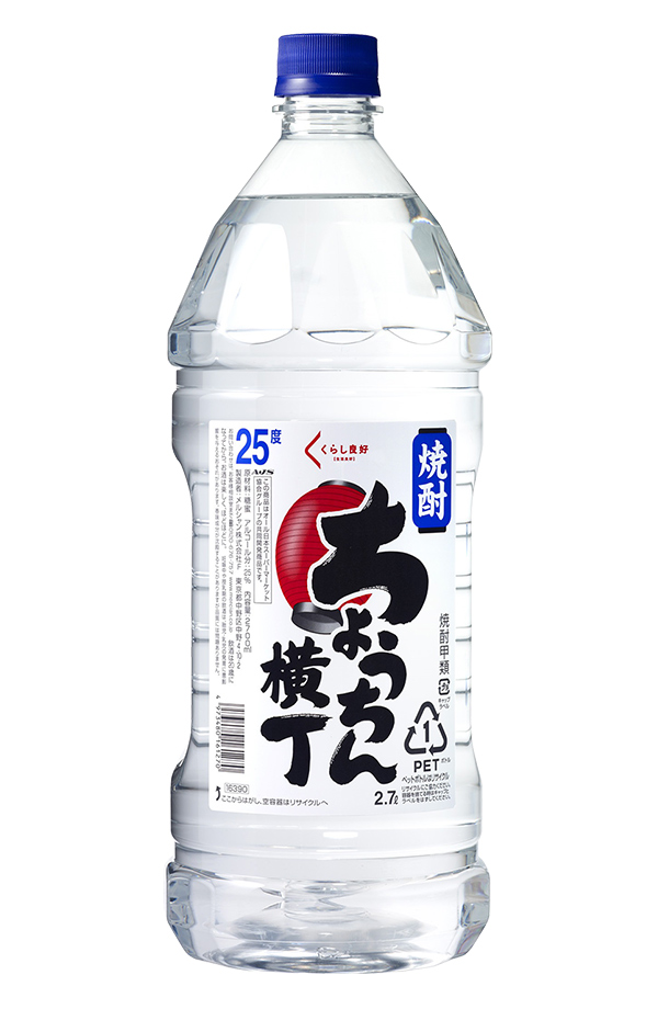 | メルシャン ちょうちん横丁 25度は、クリアに仕上げた、スッキリした味わいとやわらかな口当たりの焼酎です。 焼酎好きにはたまらない、たっぷり使える大容量ペットボトル入り。 無色透明でクセのないクリアな味わいの甲類焼酎は、毎日の晩酌に楽しむチューハイから季節ごとに仕込む果実酒作りまで、幅広くお使いただけます。 |