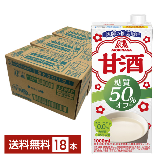 森永製菓 甘酒 糖質50%オフ 1L 紙パック 1000ml 6本×3ケース(18本) 送料無料