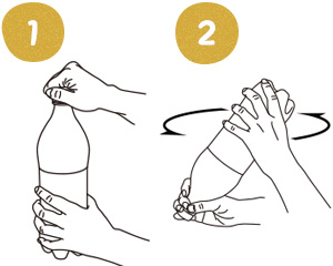 2)ボトルをさかさまにして、4〜5回ゆっくりと回転させる。