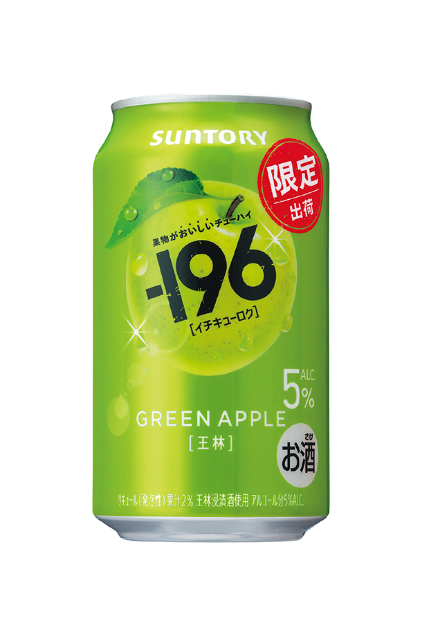 | −196 王林は、厳選した果物を−196℃でまるごと瞬間凍結して細かく粉砕、お酒に漬け込みおいしさを詰め込むことで実現した、朝摘みした果物のようなみずみずしい美味しさを楽しめる、王林を使用したりんごのチューハイ。 −196シリーズは“−196℃製法”による、皮や種に含まれる果実本来のうまみや複雑味を今まで以上に引き出した“しっかりとした果実感”が特長です。 |