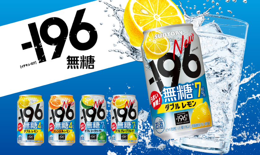 「−196 無糖」シリーズは、甘くないのにしっかりとした果実感を楽しめる「−196(イチキューロク)」です。甘くないのに果実本来の味わいが感じられる中味をさらに進化させるべく、−196℃製法でつくられる浸漬酒だけでなく、果汁やその他の原料酒を組み合わせることで、“しっかりとした果実感”と“お酒の飲みごたえ”を心地よく味わえる満足感の高い無糖チューハイに仕上げました。