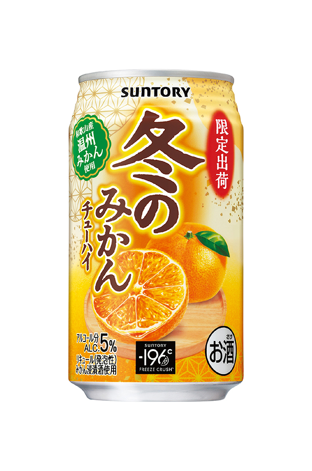 | サントリー 冬のみかんチューハイは、冬の訪れと旬の果実のおいしさを感じられる季節限定チューハイです。 サントリー独自の“−196℃製法”を活用し、果実まるごとのおいしさを引き出しました。 和歌山県産の温州みかんを使用しました。みかんのやさしい甘さとやわらかな酸味が楽しめる果実チューハイです。 |