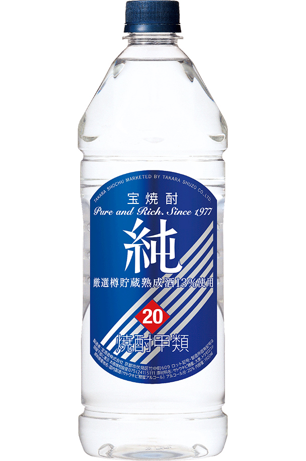 | 1970年代。世界の酒トレンドに「白色革命」が到来。 ウォッカやジンなど無色透明な酒への希求は世界各地へ波及していきました。 その流れをいち早く掴み、日本の白色革命の旗手として発売され、それまでの焼酎のイメージを一新したのが宝焼酎「純」でした。発売から30年たった今でも多くのご支持をいただき、日々、その品質を磨き続けています。 11種類の厳選樽貯蔵熟成酒を13%使用し、絶妙な味わいに仕上げました。 後味はすっきりと、まろやかで口当たりの良い焼酎です。ロック・水割りなどでお楽しみ下さい。 |