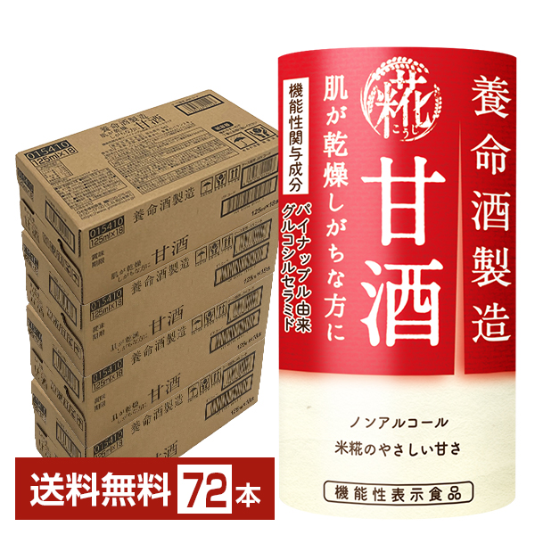 機能性表示食品 養命酒製造 甘酒 125ml 紙パック 18本×4ケース(72本) 送料無料