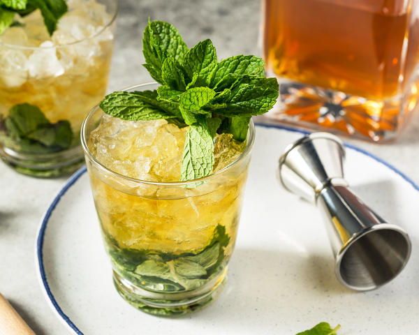 ケンタッキーダービーの公式カクテル アーリー・タイムズは、アメリカの三冠競走「ケンタッキーダービー」の公式カクテルである「ミント・ジュレップ」に欠かせない存在として知られています。 アーリー・タイムズにシロップと新鮮なミントを加えた爽やかなドリンクで、バーボンの穏やかで豊かな風味がミントの清涼感と絶妙にマッチし、軽やかで贅沢な時間を演出してくれます。 ミント・ジュレップは、ケンタッキーダービーの最後を飾る優勝者を讃える乾杯に用いられる事が伝統となっており、まさにアメリカ南部の伝統と誇りを象徴するカクテルとして愛されています。 |