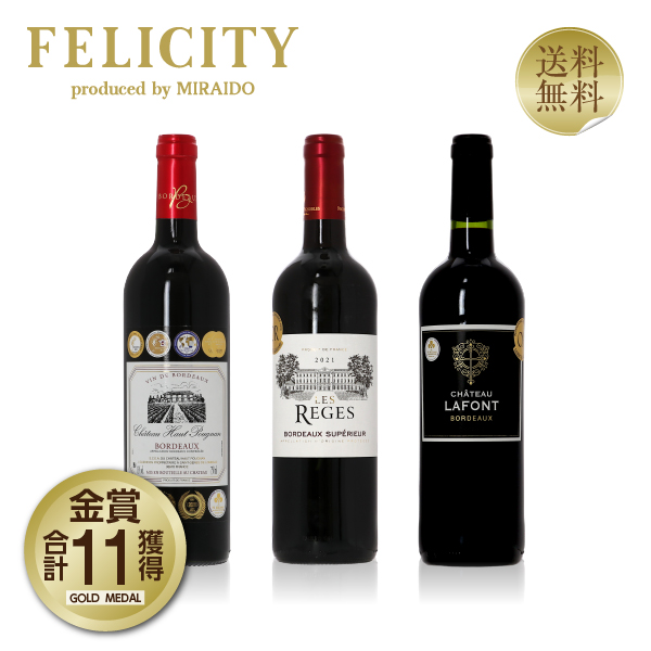 150円OFFクーポン フランス ボルドー 厳選! 金賞受賞ボルドー 赤ワイン 3本セット 第42弾 750ml×3 送料無料 金賞ワイン 包装不可 飲み比べ ワインセット