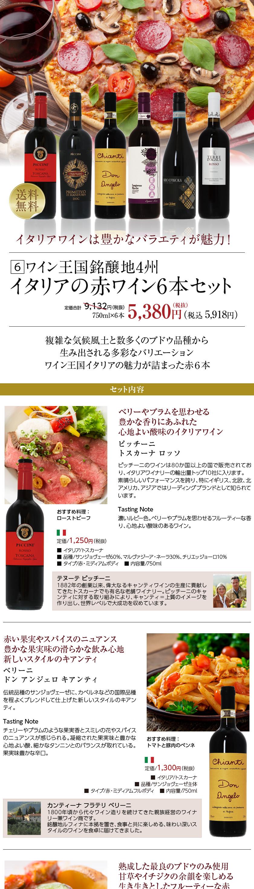 300円OFFクーポン 【6】赤ワインセット ワイン王国「イタリア」の赤ワイン6本セット 第33弾 750ml×6 送料無料 包装不可 飲み比べ ワインセット