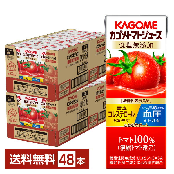 ポイント10倍 機能性表示食品 カゴメ トマトジュース 食塩無添加 200ml 紙パック 24本×2ケース(48本) 送料無料