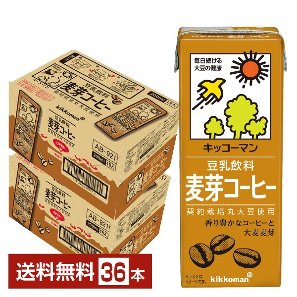 | キッコーマン 豆乳飲料 麦芽コーヒーは契約栽培丸大豆を使用。 生のコーヒー豆を丹念にローストして抽出した香り豊かなコーヒーに、香ばしい麦芽エキスをブレンドし、おいしく仕上げた豆乳飲料です。 |