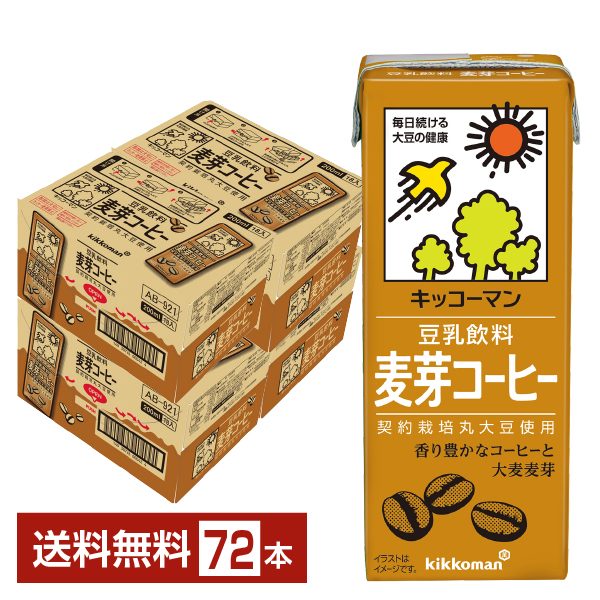 | キッコーマン 豆乳飲料 麦芽コーヒーは契約栽培丸大豆を使用。 生のコーヒー豆を丹念にローストして抽出した香り豊かなコーヒーに、香ばしい麦芽エキスをブレンドし、おいしく仕上げた豆乳飲料です。 |