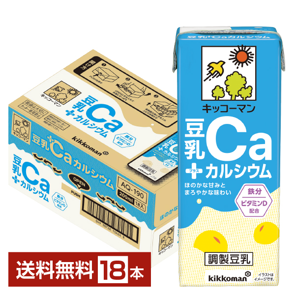 | キッコーマン 豆乳+カルシウムは、人気の「調製豆乳」にカルシウムを加えた、牛乳と同じカルシウム量(※)と鉄分配合の豆乳です。カルシウムの吸収を促進するビタミンDも配合。 大豆の青臭みを極限まで抑えた、ほのかな甘味とまろやかな味わいのある豆乳です。 (※)「豆乳+カルシウム」1本(200ml)あたり:カルシウム262mg 牛乳100gあたり:カルシウム110mg(日本食品標準成分表2020普通牛乳より) |
