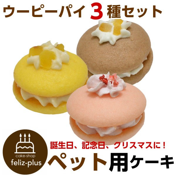 犬用 猫用 ケーキ 誕生日 誕生日ケーキ ウーピーパイ 3種セット(いちご味、さつま芋味、バナナ味) ペット用ケーキ