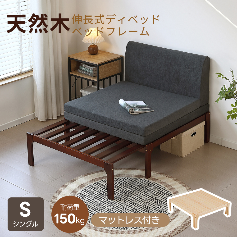 【5%OFFクーポン利用可能!】ディベッド 伸長式ベッド 耐荷重150kg ソファベッド シングル 天然木 ベッドフレーム 伸縮 下収納 おしゃれ 2way 天然木 来